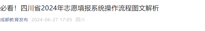 【高考 2024年四川省高考志愿填报系统操作流程图文解析】易学网从成都教育发布了解到,2024年四川省高考志愿填报系统操作流程图文解析公布,相关事宜详情如下: