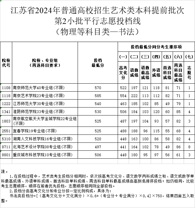 “江苏2024年高考招生艺术类本科提前批次第2小批平行志愿投档分数线” 由易学网收集于互联网或用户投稿,仅供参考,具体以教育考试院或学校官网发布为准!如有侵权,请联系站长删除。