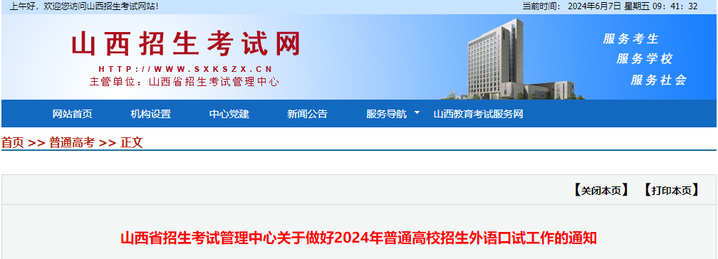 2024年我省普通高校招生外语口试采取网上报名、网上缴费的方式。考生可凭考生号及登录密码,登录山西招生考试网(www.sxkszx.cn),在首页“考生登录”下选择“普通高考考生网上服务平台”进行报名和打印准考证。