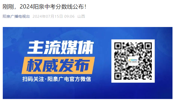 【 2024年山西阳泉中考分数线(已公布)】易学网从阳泉广播电视台了解到,2024年山西阳泉中考分数线已公布,详情如下: