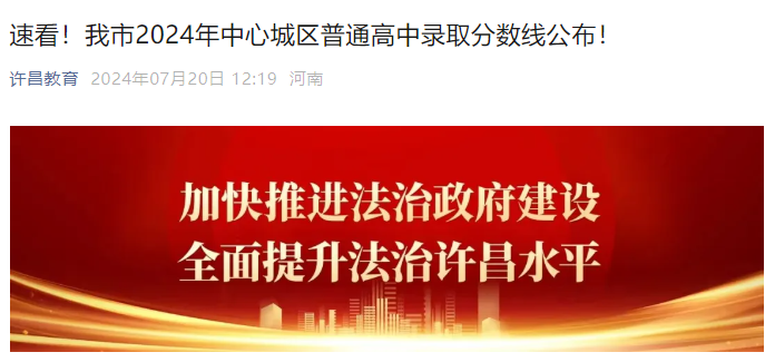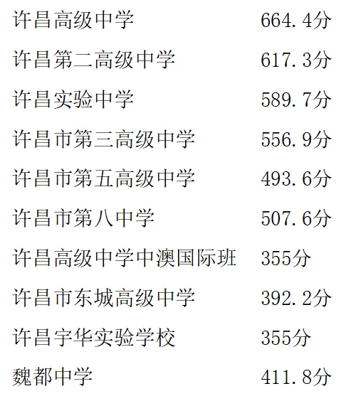 【 2024年河南许昌中心城区普通高中录取分数线公布】易学网从许昌教育了解到,2024年河南许昌中心城区普通高中录取分数线公布,详情如下: