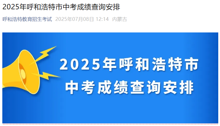 呼和浩特市招生考试信息网:2025年内蒙古呼和浩特中考成绩查询入口(查分时间7月8日)