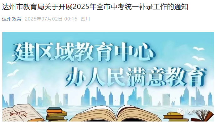 2025年四川达州市中考统一补录志愿填报时间:7月2日-5日