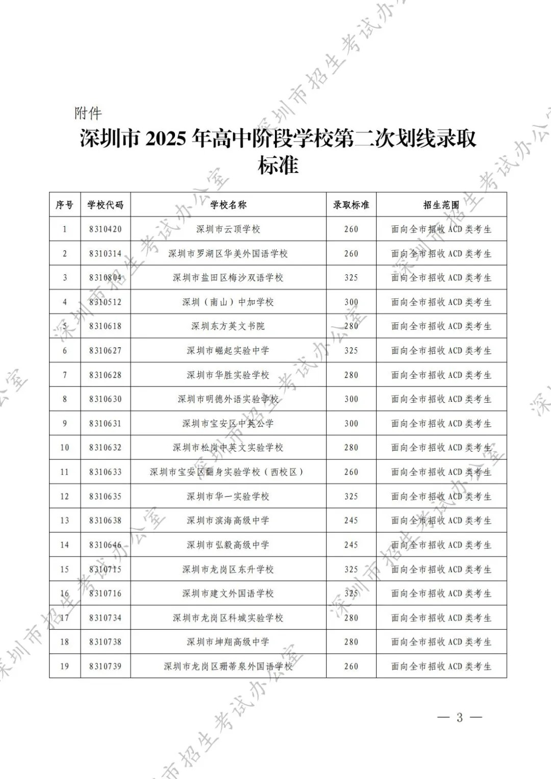 深圳市2025年高中阶段学校第二次划线录取的录取标准现予以公布。